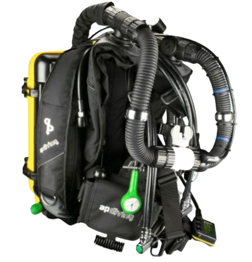- Geringer Gasvorrat nötig : Durch das „Recycling“ des Gases reichen kleine 2- oder 3-Liter-Flaschen für sehr lange Tauchgänge aus.